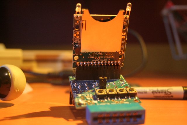 No serious commodore enthusiast is without his or her SD card reader. I happen to have the uIEC which Jim Brain soldered together right in front of me at the World of Commodore 2011 in Toronto.