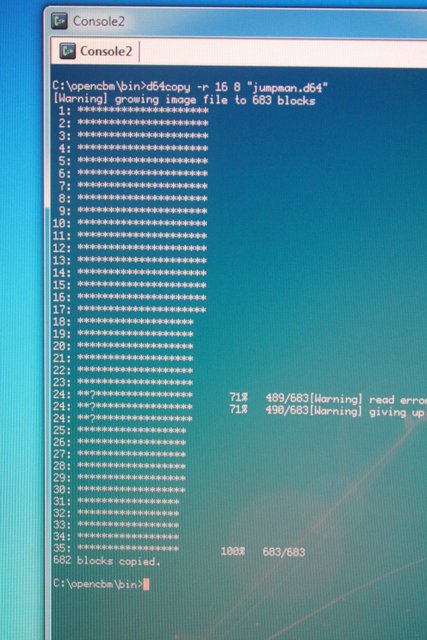 A minute later, and it is done. Unfortunately, we have a bad sector. Hopefully it is in an unused part of the disk, or in some graphics that won't cause a crash.