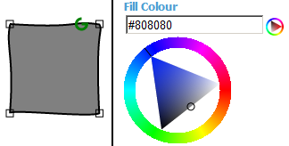 (Update in response to criticism.) The fix I made matches expectations of new users, as well as experienced designers. If the current colour has saturation level 0 (i.e. it's white/black/gray), and you click on the outer ring, then obviously your intention is to eventually increase the saturation. Otherwise what you are doing has no effect. The program sets the saturation component to 1.0 only in that specific case. Otherwise, it leaves your current position in the triangle alone, allowing you to rotate the hue value.